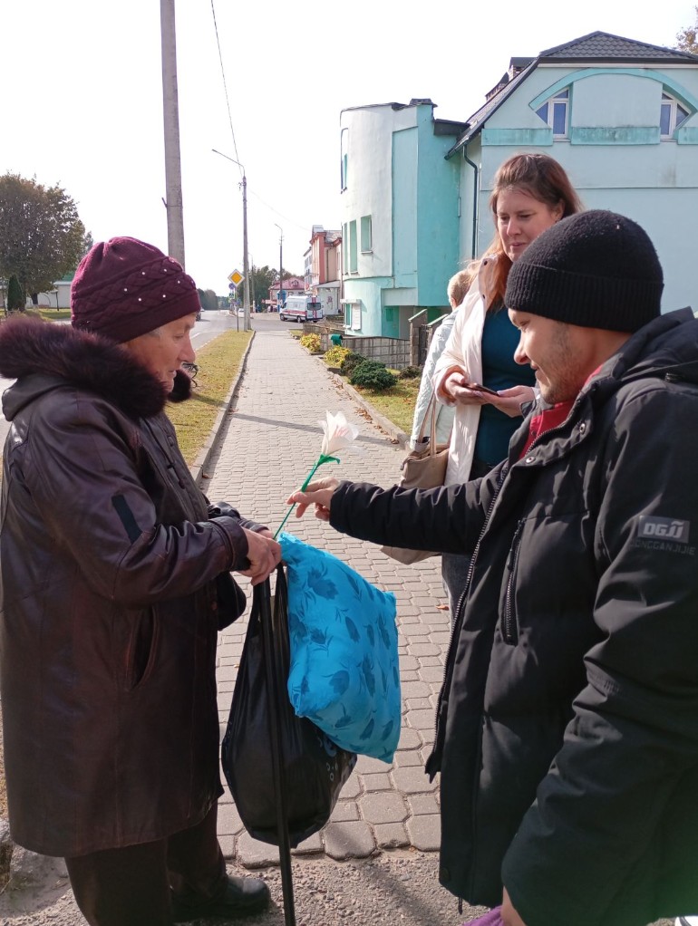 1 октября люди с инвалидностью, посещающие отделение социальной реабилитации, абилитации инвалидов и дневного пребывания для граждан пожилого возраста, приняли участие в акции «С почтением и заботой». На улицах Круглого они вручили сувениры, изготовленные в кружках отделения, пожилым гражданам и поздравили их с Днем старшего поколения, Днем доброты и мудрости.