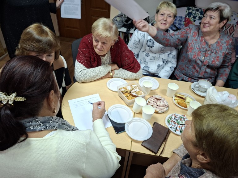 Присутствующие с удовольствием принимали участие в викторинах, конкурсах и творческих заданиях. Душевное настроение и теплый микроклимат царили во время программы.