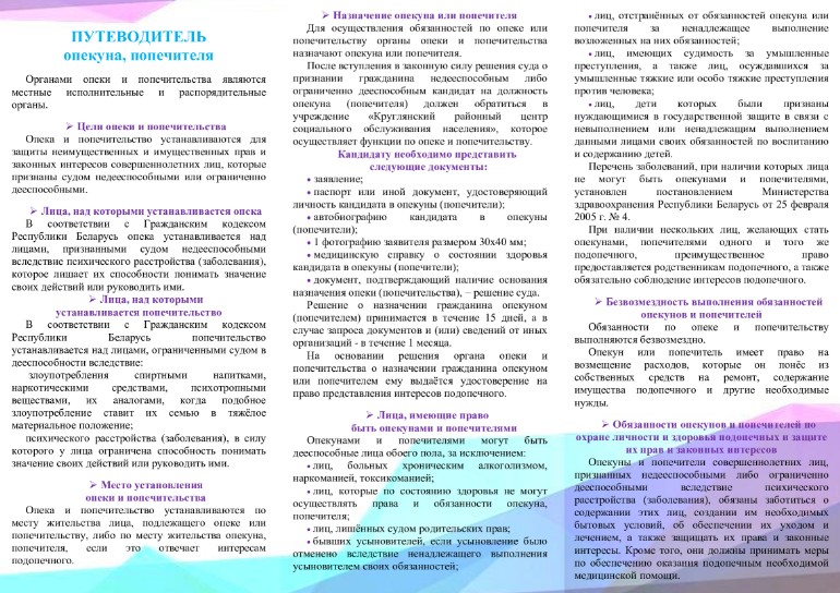 Путеводитель опекуна, попечителя - Учреждение "Круглянский РЦСОН"