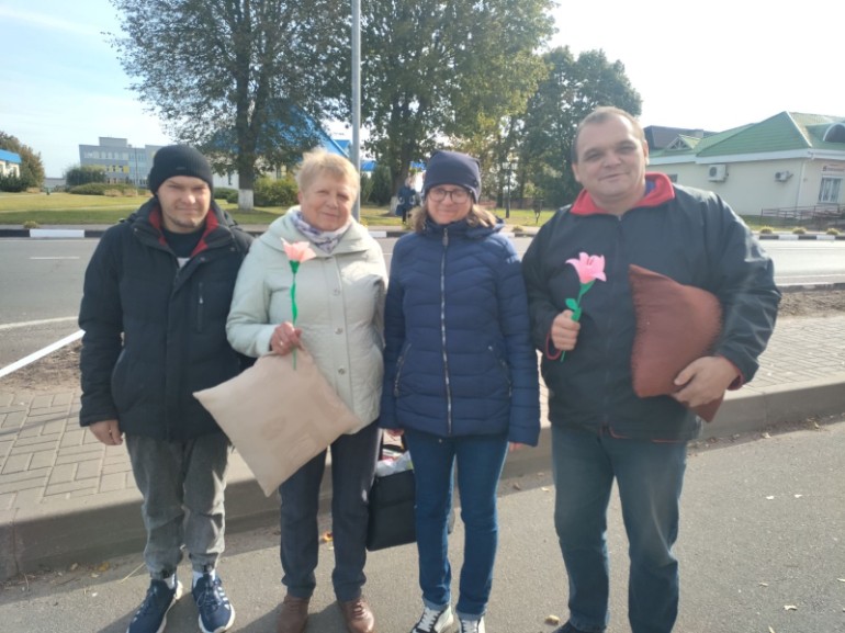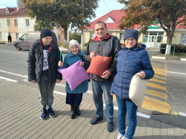 1 октября люди с инвалидностью, посещающие отделение социальной реабилитации, абилитации инвалидов и дневного пребывания для граждан пожилого возраста, приняли участие в акции «С почтением и заботой». На улицах Круглого они вручили сувениры, изготовленные в кружках отделения, пожилым гражданам и поздравили их с Днем старшего поколения, Днем доброты и мудрости.