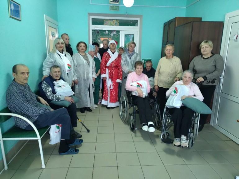 13 января в рамках республиканской благотворительной акции "От всей души" специалисты отделения социальной реабилитации, абилитации инвалидов и дневного пребывания для граждан пожилого возраста и волонтерская группа учреждения "Круглянский РЦСОН" посетили с праздничной концертной программой «Пусть праздник всем подарит чудо» проживающих в Шепелевичской больнице сестринского ухода.