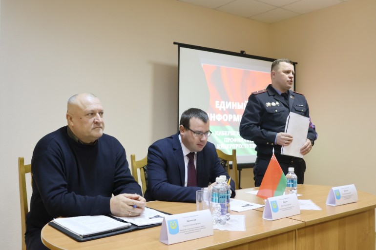 В рамках Единого дня информирования коллектив учреждения "Круглянский РЦСОН" с тематикой "Кибербезопасность и профиластика киберпреступности" посетили председатель районного исполнительного комитета И.А.Багель, начальник отдела идеологической работы и по делам молодежи райисполкома С.А.Лазовский и начальник штаба ОВД райисполкома И.В.Поздняков.