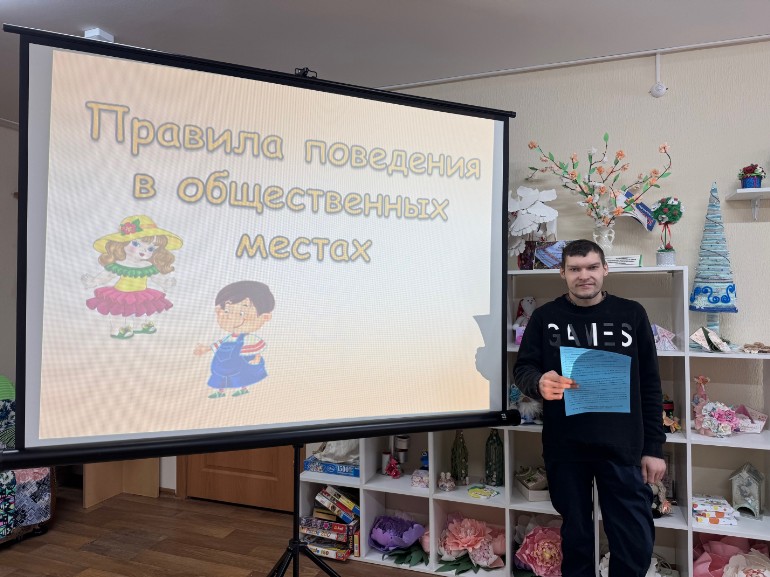 В рамках организации работы по принципу «равный обучает равного» в Круглянском центре социального обслуживания населения проведено занятие «Правила поведения в общественных местах».