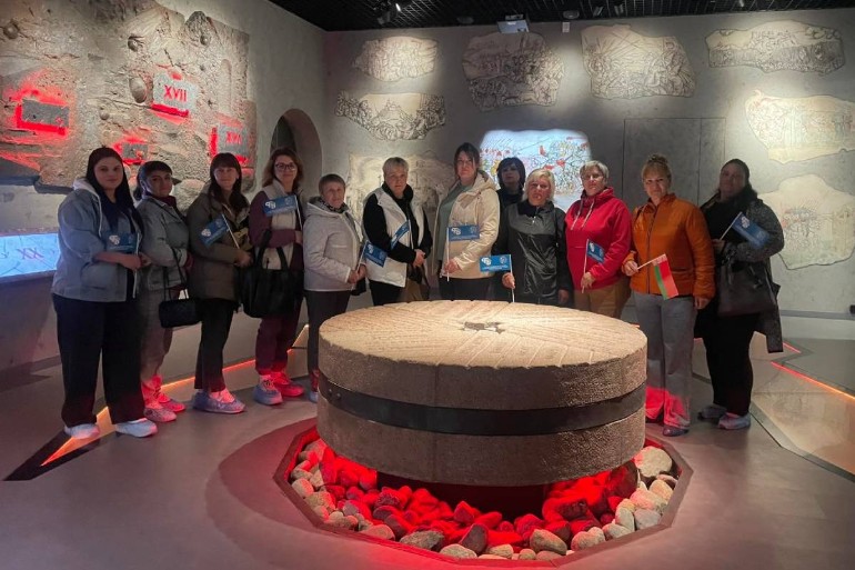 Следующая остановка маршрута ‒ мемориальный комплекс «Хатынь». Здесь экскурсия продолжилась с посещения музея, где сотрудники центра ознакомились с экспозицией, рассказывающей о трагических событиях военных лет. Шесть выставочных залов последовательно раскрывали историю крупных военных конфликтов и трагедий мирного населения.
