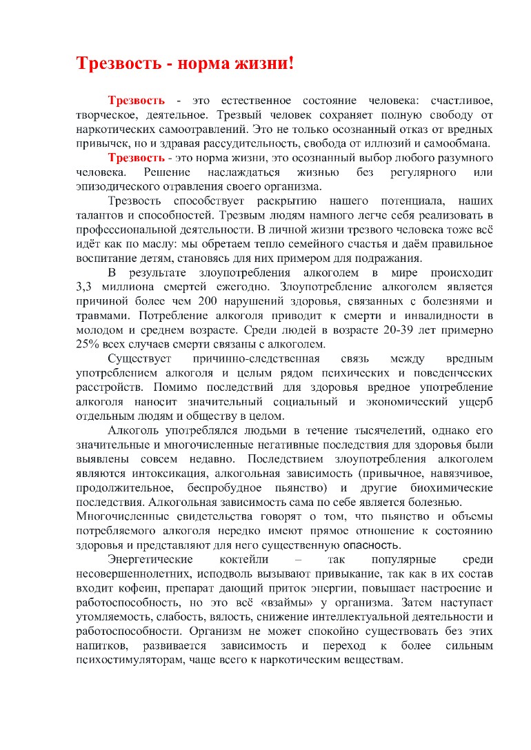 Трезвость - норма жизни!